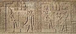 - ↑ Kirsten Konrad: Architektur und Theologie: pharaonische Tempelterminologie unter Berücksichtigung königsideologischer Aspekte. Otto Harrassowitz Verlag, Wiesbaden 2006, ISBN 3-447-05436-0, S. 127 (Scan in der Google-Buchsuche).