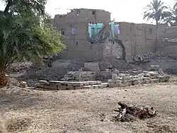 In der Zeit des Neuen Reiches ließ Thutmosis III. nördlich der vom Tempel zum Nilufer führenden Prozessionsstraße eine Barkenstation errichten. Sie wurde durch seine Nachfolger Amenophis II., Sethos I., Amenmesse, Ramses III. und Ramses IV. in unregelmäßigen Abständen instand gesetzt.[4] Viele Steinblöcke des Bauwerks wurden später bei der Errichtung der Kirche von Deir Anba Ibschai verwendet.[5] Außerhalb des heute freigelegten Geländes wird unter einer Moschee ein größerer Tempelbau Thutmosis’ III. vermutet.[1]