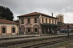 Tempio besitzt einen Bahnhof an der Bahnstrecke Sassari–Palau, der nur noch im Sommer mit Zügen des sog. Trenino Verde bedient wird. Dabei fahren Züge von Tempio nach Palau und von Tempio nach Sassari. Der denkmalgeschützte Bahnhof wurde Ende der 1930er Jahre erbaut, als Tempio Knotenpunkt im Schmalspurnetz der Ferrovie della Sardegna, kurz FdS, wurde, und sich in Tempio die heute stillgelegte und teilweise abgebaute Bahnstrecke Monti–Tempio Pausania und die Bahnstrecke Sassari–Palau trafen. Der Bahnhof selber liegt im Tal unterhalb des großen Largo XXV Aprile. In der holzgetäfelten Wartehalle ziehen sich folkloristische Ölgemälde als Fries entlang (keine Fresken, sondern Holztafeln). Sie zeigen in großflächig-figurativem Stil typische Szenen aus dem sardischen Dorfleben. Sie stammen von Giuseppe Biasi aus Sassari. Für die Auftragsarbeit zur Verschönerung des damals neuen Bahnhofs bekam er 750 Lire.