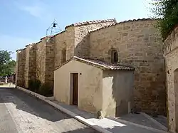 Die Kirche entstand im 12. Jahrhundert im Stil der Romanik als einschiffige Saalkirche von drei Jochen mit einer Halbkreisapsis als Chorschluss direkt unterhalb der Burg der Bischöfe von Uzès, als deren Kapelle sie gedient haben dürfte. Im 16. Jahrhundert wurde im Zuge der Reformation an der Kirche der reformierte Gottesdienst eingeführt. Als Folge des Edikts von Nantes wurde die Kirche wieder den Katholiken übergeben, während sich die Reformierten eine eigene Kirche im Ort errichten konnten. Diese wiederum wurde nach der Aufhebung des Edikts im Jahr 1685 zerstört. Die romanische Kirche wurde nach der Eroberung des Ortes, der sich die Besatzung der Burg widersetzen konnte, durch die Kamisarden in Brand gesetzt.