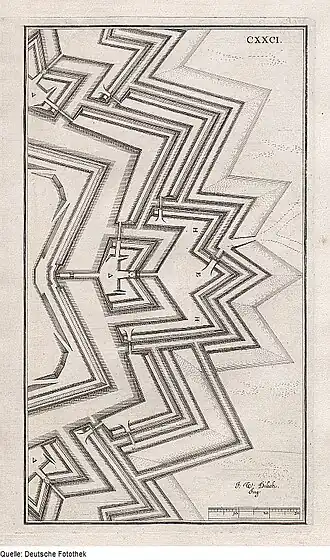 - ↑ Zastrow: Geschichte der beständigen Befestigung. 1839, S. 101.
