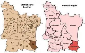 - ↑ Stadt Erlangen, Liste der amtlichen Gemeindeteile/Ortsteile im BayernPortal des Bayerischen Staatsministerium für Digitales, abgerufen am 16. September 2025.