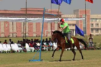 Entsprechend ist die Sportart vor allem in Indien weit verbreitet. Andere wissenschaftliche Quellen legen jedoch nahe, dass der Sport in Zentralasien[6] oder im Nahen Osten[7] entstand und erst später in Indien populär wurde. Da der spezifische Wettkampf des Tent Pegging die bekannteste der kriegerischen Reitsportdisziplinen ist, wurde Tent Pegging mit dem Schwinden der Kavallerie im zwanzigsten Jahrhundert zum Oberbegriff der ganzen Disziplin.