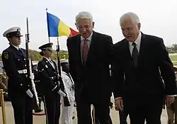 Teodor Viorel Meleșcanu (* 10. März 1941 in Brad) ist ein rumänischer Diplomat und Politiker (ALDE, ehemals PNL). Zwischen 2012 und 2014 war er Chef des rumänischen Externen Nachrichtendienstes. Erstmals war er von 1992 bis 1996 Außenminister.[1] Kurzzeitig war er erneut im November 2014 als rumänischer Außenminister Mitglied der Regierung Ponta. Von Januar 2017 bis Juli 2019 war er ein drittes Mal Außenminister im Kabinett Dăncilă.