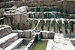 Es gibt zwei heiße Quellen, die 20 Meter voneinander entfernt sind. In der ersten steht das Wasser in einem Becken. Es hat eine Temperatur von 47 °C. Aus der zweiten Quelle strömen 10 Liter Wasser pro Sekunde mit einer Temperatur von 46 °C. Schlamm aus Calcit, Gips und Schwefel lagert sich aus der Quelle ab.[5] Andere Quellen nennen eine Temperatur von bis zu 49 °C und eine Wassermenge aus allen Quellen von etwa 2000 Liter pro Minute. Das Wasser hat einen schwachen, aber deutlichen Schwefelgeruch und enthält außerdem große Mengen an Natrium und Calcium.[2] Das Gebiet besteht aus Pliozän-Ainaro-Kies mit Kalkstein, der auf Kämmen über den Quellen aufragt.[5]
