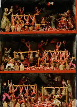 Der bewaffnete Konflikt in Peru unterschied sich von anderen Konflikten in Lateinamerika dadurch, dass beide Seiten – gerade auch der Leuchtende Pfad, der laut Wahrheitskommission als Guerilla durch seine außerordentliche Grausamkeit einen Sonderfall darstellt[46] – besonders rücksichtslos und ohne jegliche Schonung des Lebens zahlreicher am Kampf Unbeteiligter vorgingen. Als Beispiele genannt werden können das von Sendero Luminoso begangene Massaker am 3. April 1983 an 69 Bauern in Lucanamarca,[47][48] der auf Drängen der Sinchis von Bauern in Uchuraccay begangene Mord an acht Journalisten und zwei Begleitern und die in Reaktion darauf im Laufe des Jahres 1983 erfolgte Niedermetzelung von 135 Dorfbewohnern, darunter 57 Frauen, durch Sendero Luminoso, so dass Uchuraccay zu einer Wüstung wurde,[49][50] oder auch das Blutbad durch Sinchis an 32 Männern, Frauen und Kindern in Socos in der Provinz Huamanga am 13. November 1983.[51][52] Weitaus mehr Todesopfer als durch die vor allem anfangs wichtigen Sinchis wurden von regulären Truppen – außerhalb Ayacuchos aufgestellten Einheiten des Heers und der Marineinfanterie – verursacht. In der Provinz Huanta operierte die Marineinfanterie, in höheren Ortslagen aber vor allem Heereseinheiten. Letztere waren unter anderem verantwortlich für ein Massaker im Dorf Putis an 123 Frauen, Männern und Kindern aus den Ortschaften Cayramayo, Vizcatampata, Orccohuasi und Putis im Distrikt Santillana im Dezember 1984. Die Dorfbewohner wurden unter dem Vorwand nach Putis gebracht, sie würden vor Sendero Luminoso beschützt, und mit vorgehaltenen Waffen gezwungen, eine angebliche Baugrube (oder einen Fischteich) auszuheben. Nach Vergewaltigung der Frauen wurden diese und die anderen Festgenommenen erschossen und in die Grube geworfen.[53] Auch Ende 2015 sollten die Täter noch nicht ermittelt und nur 28 der 92 exhumierten Skelette identifiziert sein.[54][55] Kurz nach der Regierungsübernahme durch Alan García zerstörte eine Patrouille der in Huamanga stationierten Heereseinheit Lince („Luchs“) am 14. August 1985 die kleine Ortschaft Accomarca in der Provinz Vilcashuamán von Ayacucho, die sie als Operationsbasis des Leuchtenden Pfades ansah. Bewohner des Ortes wurden brutal gefoltert und teilweise bei lebendigem Leibe verbrannt. Am Ende waren nach späteren Angaben der Wahrheitskommission 62 unbewaffnete Menschen – 24 Männer, 10 Frauen, 1 Jugendlicher und 26 Kinder – tot und das Dorf ausgelöscht. Am 8. und am 13. September wurden darüber hinaus insgesamt sieben Zeugen von Soldaten ermordet.[56] Am 13. Mai 1988 überfielen Senderistas bei Erusco einen Militärtransport und töteten vier Soldaten, darunter den Hauptmann. Am 14. Mai und den darauf folgenden Tagen ermordeten Soldaten des Heeres in Cayara, Erusco und Mayupampa in der Provinz Víctor Fajardo insgesamt 39 Menschen.[57] Dieses Verbrechen wird unter anderem deshalb herausgestellt, weil Präsident Alan García öffentlich das Vorgehen der Armee rechtfertigte.[58]