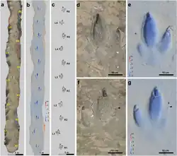 - ↑ Ricardo N. Melchor, Silverio F. Feola, M. Cristina Cardonatto, Nahuel Espinoza, Manuel A. Rojas‑Manriquez und Lorena Herazo: First terror bird footprints reveal functionally didactyl posture. Scientific Reports 13, 2023, S. 16474, doi:10.1038/s41598-023-43771-x.