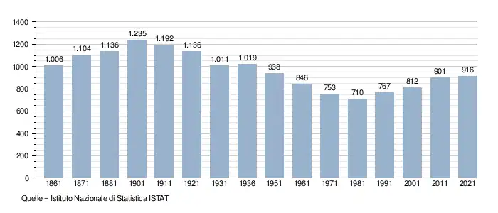 - ↑ Bilancio demografico e popolazione residente per sesso al 31 dicembre 2024. ISTAT. (Bevölkerungsstatistiken des Istituto Nazionale di Statistica, Stand 31. Dezember 2024).