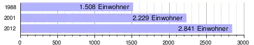 Im Hauptort lebten bei der Volkszählung 2012 2.841 Einwohner in 344 Haushalten,[1] bei der Volkszählung 2001 2.229 in 268 Haushalten[7] und bei der Volkszählung 1988 1.508 in 208 Haushalten.[8]