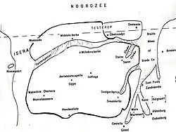 Das erste Zentrum der Insel lag in Mariakerke, die auch die älteste Kirchengemeinde der Insel ist. Seit dem 10. Jahrhundert wurde der Priel, der Testerep vom Festland trennte, mit Deichen gesichert. Seit dem 12. Jahrhundert wurde das Gebiet mit Schleusen und Sielen entwässert und der Kanal am östlichen Ende abgedeicht. In dieser Zeit entstanden auch die größeren Ortschaften. Die Ortsnamen Ostende, Westende und Middelkerke beziehen sich auf die Lage auf der ehemaligen Insel.