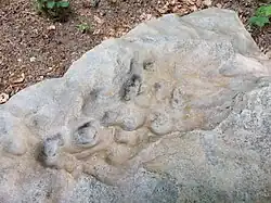 Der Sage nach schleuderte der Teufel den Riesenstein mit einer derartigen Wucht, dass der Stein dabei verformt wurde. Die Vertiefungen, die seine Finger im Stein hinterließen, seien heute noch sichtbar.