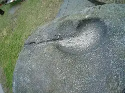 Mit dem Teufelsstein verbindet sich die Sage einer einstigen Teufelsbeschwörung in einer nahegelegenen Kapelle. Die Menschen erhofften sich vom Teufel Reichtum. Der Pfarrer erfuhr von dem Frevel und schritt dagegen ein. Die Teufelsanbeter flohen. Da erschien der Teufel mit einem Sack voll Gold und Edelsteinen auf dem Felsen bei der Kapelle. Doch als er die Flüchtenden und den Pfarrer sah, wurde er wütend und schlug mit seinem Schwanz auf den Teufelsstein. An der Stelle, wo der Teufel saß und mit dem Schwanz auf den Felsen schlug, ist heute noch eine Vertiefung mit einer Rinne vorhanden.[1] Der Jablonecer Chronist Adolf Lilie berichtete 1895 von einem vergeblichen Steingewinnungsversuch durch Steinmetze. Zeugnisse dieser Bemühungen sind heute noch vorhandene Treibkeillöcher.
