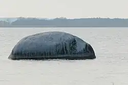 Der Findling ist 4,0 Meter lang, 3,8 Meter breit und 2,7 Meter hoch, wovon durchschnittlich 1,2 Meter unterhalb des Wasserspiegels liegen. Der Umfang beträgt 10 Meter. Das Volumen wurde zu 22 Kubikmeter berechnet. Er besteht aus Granit mit blauem Quarz und wurde während der Weichseleiszeit durch Gletscher aus Småland nach Vorpommern gebracht.