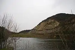Auf den Steinbruch ist auch der See am Fuße des Steinbruchhanges zurückzuführen. Es handelt sich um eine Stelle, an der das Gestein 23 Meter tiefer als die Umgebung abgebaut wurde und die sich nach Einstellung des Abbaus mit Wasser füllte.[34]