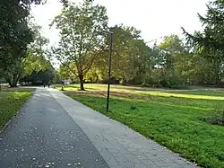 Der Park liegt auf dem Geestrücken[1] nördlich der Hammer Landstraße und wird im Nordwesten vom Sievekingdamm und im Nordosten von der Meridianstraße und Hirtenstraße begrenzt. Nach Osten hin schließt sich ein langgestreckter Grünzug an, der parallel zur Hammer Landstraße und zu der am Geesthang verlaufenden U-Bahn-Linie in Richtung Billstedt verläuft. Zum Park gehören ein Spielplatz, eine Hundeauslaufzone sowie die Kunstplastik Große Panthea des Bildhauers Wilhelm Ohm. Am südwestlichen Ende des Parks befinden sich zwei voneinander getrennte unterirdische öffentliche Schutzräume aus dem Jahr 1968.[2]