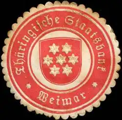 Die Thüringische Staatsbank war von 1922 bis 1945 eine öffentliche Bank mit Sitz in Weimar. Es war nicht mit dem Gebäude der einstigen großherzoglichen Notenbank Weimar identisch. Allerdings wurde Die Thüringische Notenbank im Jahr 1923 wurde in die Thüringische Staatsbank überführt.[1] Sitz der Thüringischen Staatsbank war die Schubertstraße 10 in Weimar.[2] Räumlich liegen beide Gebäude in näherer Nachbarschaft.