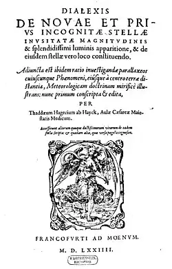 - Dialexis de novae et prius incognitae stellae inusitatae magnitudinis & splendidissimi luminis apparitione, & de eiusdem stellae vero loco constituendo, Frankfurt/Main, 1574. Reprint, herausgegeben durch Zdenek Horsky, Prag 1967 (JSTOR:229921 1969 – Rezension des Reprints).