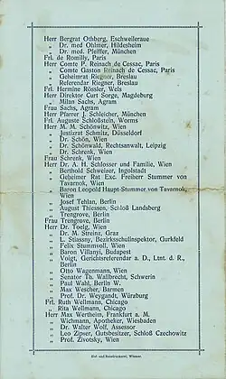 - ↑ Auf diese Reise, bei der den Mitgliedern eine Preisermäßigung von 10 Prozent eingeräumt wurde, wies ein Prospekt mit den Reisestationen und Preisen in der Ballspende des 1. Vereinsballs am 14. Januar 1912 in den Wiener Musiksälen hin.