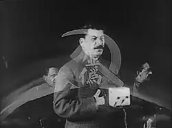 Der Sprecher weist nun darauf hin, dass die Stimmen der Nazis verstummt seien, die Große Lüge aber weiterlebe, in Josef Stalin und der Stalin-Gang. Es folgen alternierend Kopfbilder von NS-Funktionären und kommunistischen Führern, angefangen mit Josef Stalin, wobei nun an Stelle des Hakenkreuzes Hammer und Sichel und chinesische Schriftzeichen als Symbole des Kommunismus eingeblendet werden. Weitere Bilder zeigen Massenaufmärsche aus Anlass der Nürnberger Reichsparteitage und zum Tag der Arbeit auf dem Roten Platz in Moskau, mit dem Hinweis, dass die Paraden länger und die Marschmusik lauter geworden seien. Weitere Gleichsetzungen in Parallelmontagen zeigen Szenen aus nationalsozialistischen und sowjetischen Zwangsarbeitslagern, Scheinwahlen mit vorbestimmtem Wahlergebnis in beiden politischen Systemen, Schauprozesse vor dem Volksgerichtshof unter Roland Freisler und in der UdSSR und Aufmärsche von Hitlerjugend, Wehrmacht und SS gegenüber Aufmärschen der Pionierorganisation Wladimir Iljitsch Lenin und der Roten Armee. Die Folge der Gegenüberstellungen endet mit einem von oben über das Bild der marschierenden Sowjetsoldaten geschobenen stilisierten Eisernen Vorhang, der nun Europa in die freie Welt und die Welt der Sklaven teile.