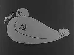 Der Slogan The dove that goes BOOM des letzten Abschnitts ist die Übersetzung des französischen Titels La colombe qui fait BOUM einer Karikatur, die auch im Film wiedergegeben wird. Eine Friedenstaube hat sich in der Weise verwandelt, dass ihre Flügel zu Panzerketten wurden und ihr Kopf den Turm eines mit Hammer und Sichel markierten sowjetischen Kampfpanzers darstellt. Dieses Symbol wurde von der französischen antikommunistischen Gruppe Paix et Liberté als erstes Poster in einer Serie veröffentlicht und in 300.000 Exemplaren gedruckt und verteilt. Es war eine Karikatur der 1949 von Pablo Picasso entworfenen und lithografierten Silhouette einer Taube, die von Louis Aragon 1949 als Symbol des Kongresses des Weltfriedensrats in Paris ausgewählt wurde. Für dieses Werk erhielt Picasso 1955 den Internationalen Friedenspreis des Weltfriedensrats. Die Taube Picassos ist seither ein international bekanntes Symbol für den Frieden und für die Friedensbewegung.