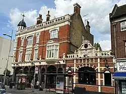 - ↑ The Black Lion Public House in Kilburn, with the single storey former billiard hall in the foreground auf historicengland.org.uk