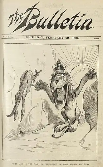 The Bulletin wurde 1880 von den beiden jungen Journalisten John Haynes (30 Jahre und Seniorpartner) und Jules François Archibald (24 Jahre) gegründet. Die erste Ausgabe der seinerzeit wöchentlich erscheinenden, achtseitigen, schäbigen kleinen Zeitung wurde am 31. Januar 1880 herausgegeben und schockte zunächst die Öffentlichkeit wegen der Sensationslust und der Sozialkritik des Blattes.[1] 1881 kam das Unternehmen in finanzielle Schwierigkeiten, das noch nicht am Markt etabliert aber schon mit einer Verleumdungsklage konfrontiert. Haynes und Archibald mussten ins Gefängnis und W. H Traill, der den verleumderischen Artikel verfasst hatte, übernahm die Zeitung und garantierte das Fortbestehen. Nachdem Haynes und Archibald auf dem Gefängnis entlassen wurden, stellte Traill sie ein und erlaubte ihnen Anteile am Unternehmen zu erwerben. 1886 hatte Archibald einen halben Anteil am Bulletin erworben und wurde wieder Herausgeber des Blattes.[2] In seine Zeit fiel auch, dass das Blatt in den 1890er Jahren an Bedeutung gewann und mit nationalistischen Slogans wie „Australia for the Australians“ (Australien für die Australier) und „Intercolonial Freetrade and Protection against the World“ (Interkolonialen Freihandel und Schutz vor der Welt), nicht mehr zu überhören war.[1]