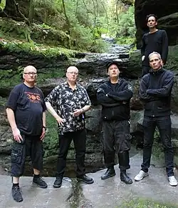 ![]() von links nach rechts Markus Pick, Georg Berger, Ralf Dunkel, Gerwin Spalink, Jörg Kleudgen (oben) Besetzung 2018: | |