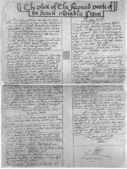 1780 wurde in einer Sammlung am Dulwich College auf dem Cover eines Manuskriptstücks aus dem 17. Jahrhundert („The Tell Tale“) die Handlung (hier „Platt“, im Sinne von Plot) des zweiten Aktes von Seven Deadly Sins entdeckt. Ursprünglich als Teil der Papiere des College-Gründers Edward Alleyn angenommen, deuten spätere Untersuchungen darauf hin, dass es Teil der Sammlung war, die der auf Theaterstücke spezialisierte Buchhändler William Cartwright, der Jüngere (ca. 1606–1686) hinterlassen hatte und die später in den Besitz des Literaturwissenschaftlers Edmond Malone (1741–1814) gelangten, als er am College einige alte religiöse Traktate gegen Stücke aus dem Cartwright-Nachlass eintauschte.[2] Als „Plot“ wurde im Elisabethanischen Theater eine tabellarische Aufführung bezeichnet, welche die Handlung zusammenfasste; er wurde zu jener Zeit üblicherweise im „Tiring Room“, dies entspricht heute in etwa dem Green Room (Künstlerruheräume im Backstagebereich) oder allgemein hinter der Bühne aufbewahrt. Dieser aufgefundene Plot des zweiten Teils von The Seven Deadly Sins hat ein quadratisches Loch in der Mitte mit an dem es für alle sichtbar an einem Brett befestigt werden konnte. Die Besetzungsmitglieder einer Theaterproduktion jener Tage hatte zwar alle eine eigene, individuell für sie geschriebene Version des Dramas, aber niemals den Dramentext als Ganzes. Somit ist der zentral aufgehängte Plot eine Hilfestellung für das gesamte Ensemble. Erhaltene Plots aus dieser Zeit sind heute äußerst selten – es existieren etwa nur noch ein halbes Dutzend.
