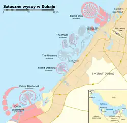 - Projekt Palm Islands, bestehend aus den drei Inselgruppen „The Palm, Jebel Ali“, „The Palm, Jumeirah“ und „The Palm, Deira“