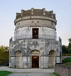 Theoderichs monumentales Grabmal in Ravenna, eines der originellsten Bauwerke der Spätantike, ist heute leer. Ein zeitgenössisches Porträt Theoderichs ist auf dem Goldmedaillon aus Senigallia erhalten geblieben, das sich jetzt im Museo Nazionale Romano befindet.[16]