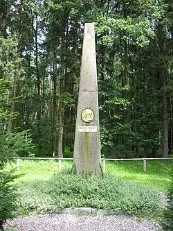 • Körner-Denkmal in Ober-Tannwald (Isergebirge); Körner erwanderte das Isergebirge in seiner Freiberger Studentenzeit.