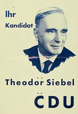 Siebel trat 1945 in die CDU ein und war Vorsitzender des CDU-Kreisverbandes Siegerland.