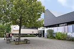 Blick auf den Eingang des Lehrgebäudes. - Sprecherziehung