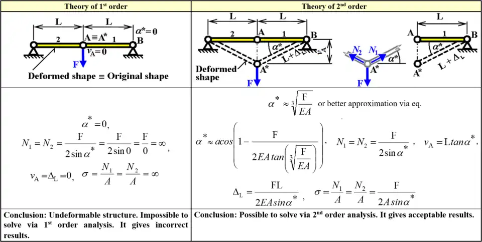 - ist diese Linearisierung nicht mehr zulässig, so wird dies oft als Theorie III. Ordnung bezeichnet; dies ist bei Seilnetzen und Durchschlagsproblemen oftmals der Fall.