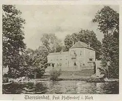- ↑ a b Martin Kramberg: Der Theresienhof. Eintrag für August in: Förderverein „Kurort Bad Saarow“ e. V.: Wandkalender 2013. ( vom 6. März 2014 im Internet Archive). Fast gleichlautend auch ein Informationsschild des Fördervereins zum Theresienhof vor Ort (ohne Datum).