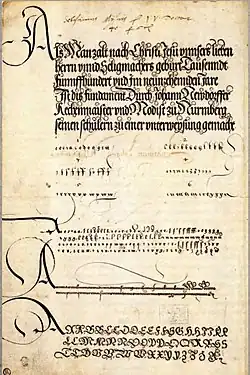 - ↑ Olaf Schneider: Die Erfindung der „Fraktur“ – Der Schreib- und Rechenmeister Johann Neudörffer der Ältere. In: Uniforum (Gießen). Band 28, 3, 2015, S. 14.