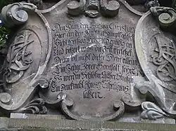 Im Kopf des Gedenksteines findet sich eine zweite Gedenktafel, die Heinrich, dem letzten Herzog von Kursachsen-Merseburg, gewidmet ist. Dieser hatte den Damm später ausbessern lassen.