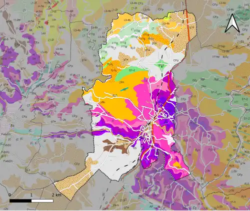 In den Flussniederungen der Côle und des Touroulets sowie im Tal des Ruisseau de Pierrefiche wurde rezentes Alluvium abgelagert (Formation K).