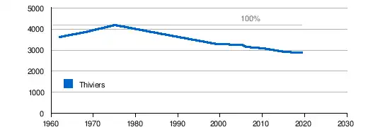 Die Bevölkerungszahlen in Thiviers sind seit 1975 generell rückläufig.