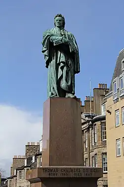1823 übernahm Chalmers die Professur für Moralphilosophie an der Universität St Andrews, wo er sich überwiegend mit nationalökonomischen Fragen beschäftigte. 1828 wechselte er auf eine Professur für Theologie an der Universität Edinburgh. Hier wurde er zum Führer der „evangelikalen“ Fraktion in der General Assembly, dem gesetzgebenden Gremium der Church of Scotland, und amtierte 1832 als Moderator. Sein besonderes Engagement galt weiterhin der Präsenz der Kirche in den industriellen Zentren, und so konnten zwischen 1834 und 1841 220 neue Kirchen gebaut werden. 1834 wurde er Mitglied der Royal Society of Edinburgh.