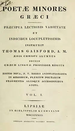 - Poëtae Graeci minores (1814–1820)