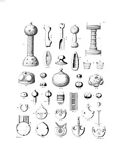 Das bronzene Ortblech mit Durchbrucharbeit auf pelteähnlicher Grundform aus römischer Fertigung, 2./3. Jahrhundert, am oberen Ende einer nicht erhaltenen Schwertscheide aus Holz/Leder (5,12 × 4,7 cm). Das Stück wird im Archäologischen Landesmuseum Schleswig aufbewahrt (Inv.-Nr. FS 5767).