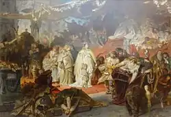 Arminius markierte als Sieger der Varusschlacht (9 n. Chr.) einen entscheidenden Wendepunkt in der Geschichte der Auseinandersetzungen zwischen den Germanen und dem Römischen Reich. Von ihrem Vater bereits einem anderen Mann versprochen, aber von Arminius entführt, wurde Thusnelda seine Frau.