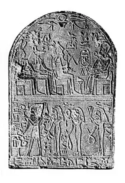 Es wurde auch vorgeschlagen, dass Hatschepsut nicht im 22. Regierungsjahr gestorben sei, sondern lediglich die Macht ihrem nun volljährigen Neffen und Stiefsohn Thutmosis übergeben und noch einige Jahre im Ruhestand gelebt habe.[38] Der letzte datierte Beleg der Hatschepsut ist die Stele des Schreibers Nacht vom Sinai aus dem 20. Regierungsjahr. Darauf werden Hatschepsut und Thutmosis III. in eindeutig paralleler Gleichstellung beim Opfer gezeigt.[39]