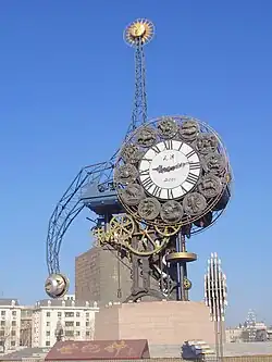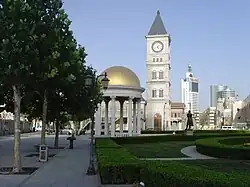 ![]() Von oben im Uhrzeigersinn: Nachtpanorama von Hai-He-Ufer – Tianjin Jinwan Plaza und Jin Tower, die St.-Joseph-Kirche / Xikai-Kirche in Heping, Stadtzentrum von Tianjin, Hauptbahnhof Tianjin, das Riesenrad – The Tianjin Eye | |||