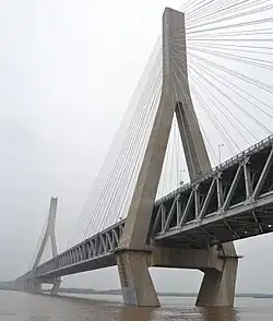 Über die Gesamtlänge wurden 1535 Pfeiler verbaut, von denen die meisten einen von vier standardisierten Durchmessern von 1,50 m, 2 m, 2,50 m oder 3,40 m besitzen. Die beiden großen Pylonen der Schrägseilbrücke in A-Geometrie haben eine Höhe von 188,5 Metern. Die Brücke ist ein seltenes Beispiel einer Schrägseilbrücke mit drei Seilebenen. Auf jeder Seilebene sind 16 Tragseile angeordnet. Auf diese Weise wird eine Tragfähigkeit von 20.000 Tonnen erreicht.[2]