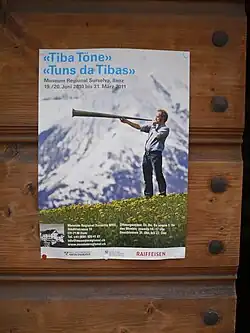 Das Museum Regiunal Surselva zeigte 2011 die Ausstellung «Tiba Töne - Tuns da Tibas», an der über 50 Tibas aus verschiedenen Materialien gezeigt wurden.[2] Zahlreiche Menschen aus der Region stellten ihre Tibas, die noch in Alphütten lagerten, für die Ausstellung dem Museum zur Verfügung.