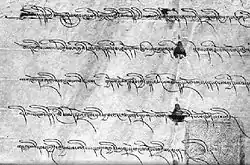 - Nennung des Ortes und des Zeitpunktes der Ausfertigung mit Abdruck des Siegels des Urhebers (Schlussprotokoll). Als Beglaubigungsmittel wurden generell Abdrücke des Siegels des Urhebers angebracht. In seltenen Fällen finden sich auch Abdrücke der Hand des Urhebers.