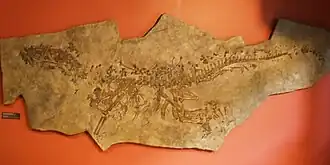 Kopie der Gesteinsplatte mit dem Typusexemplar von Ticinosuchus ferox | ||||||||||||