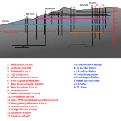 Ab 1808 erfolgte eine Erweiterung von der Grube Anna Eleonore bis zur Grube Caroline (Clausthal).